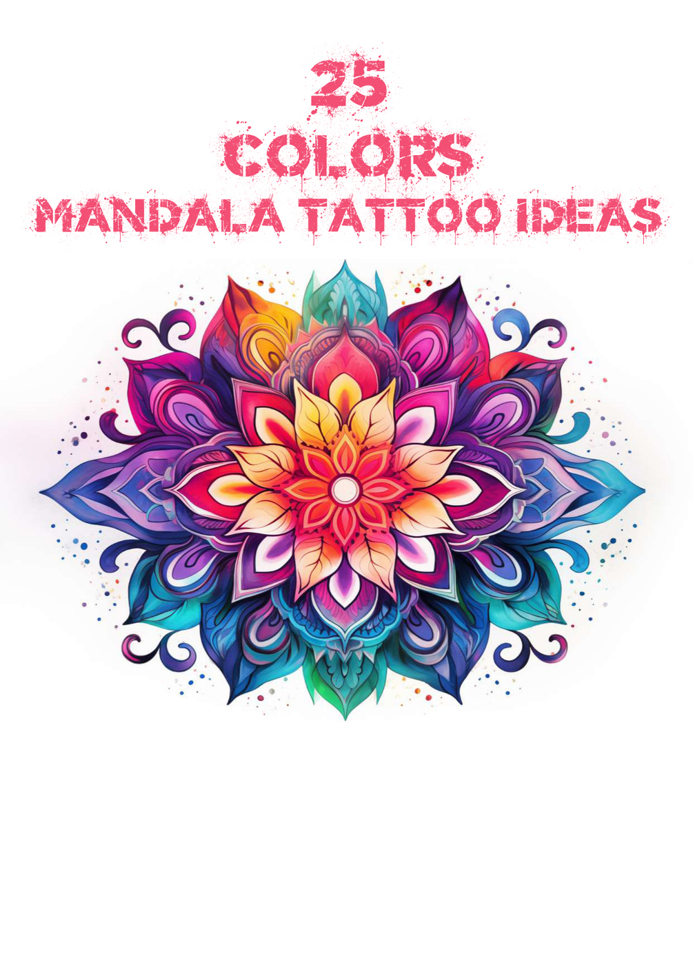 25 colors mandala tattoo ideas on white background. Tattoo ideas. Ideal for tattoo artists and tattoo parlors.